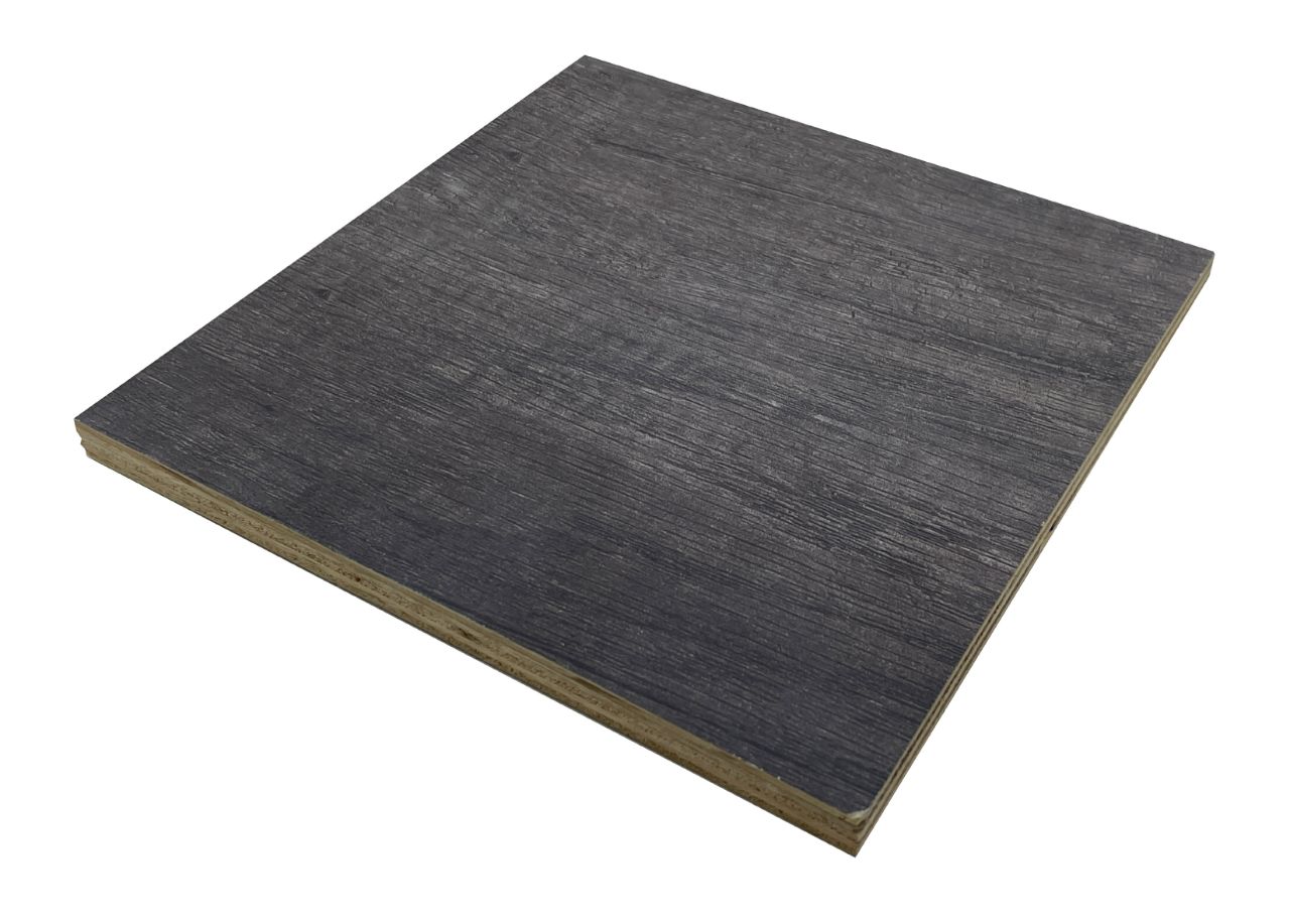 以木屑加膠合劑以高溫高壓製成,外層再壓合一層薄薄的美耐皿