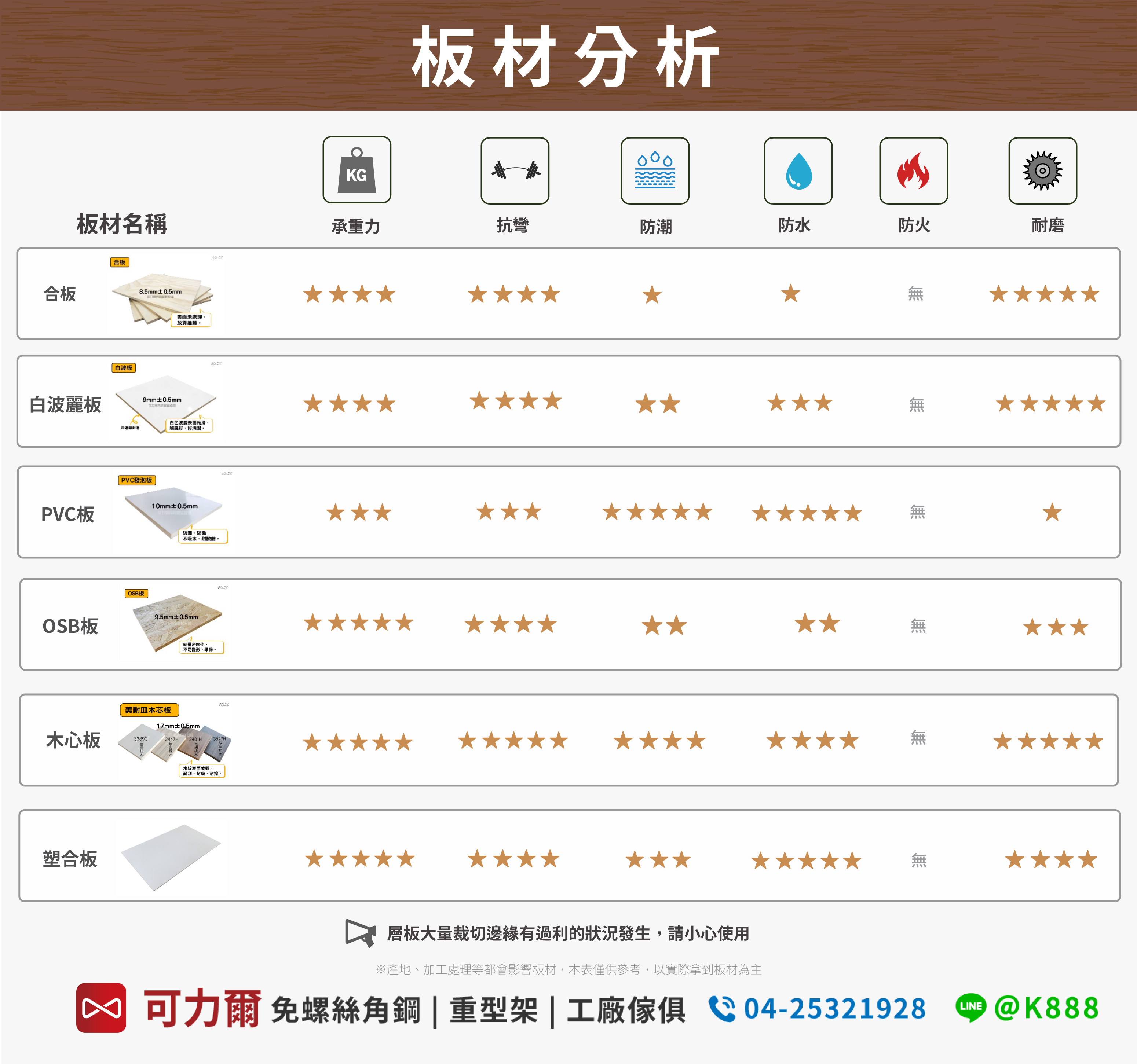 常見用途:住家隔間、櫥櫃家具、倉庫儲放貨架